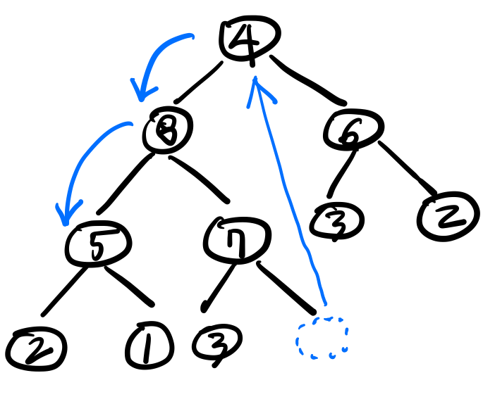 2. 새로운 값과 부모 노드의 값을 비교해 자리를 찾을 때까지 교환한다